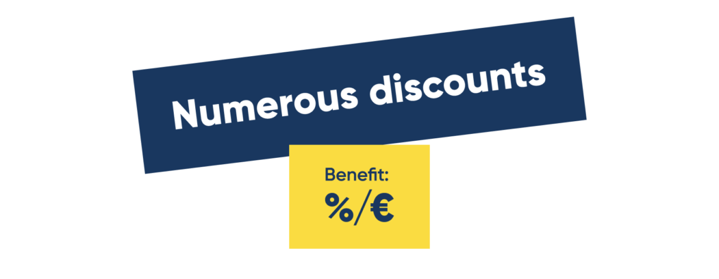 Industrial Union members receive significant discounts on things like fuel, data protection, audio books, optician’s services and accommodation. Discounts are granted in percentages or in euros.