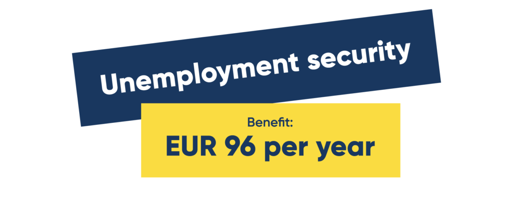 Membership of the Industrial Union includes membership of the Open Unemployment Fund (A-Kassa), worth 96 euros per year. (For example, the earnings-related unemployment benefit provided by membership for monthly earnings of EUR 3,000 is EUR 81 per day.)
