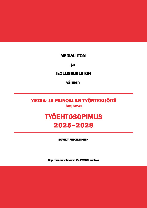 Media- ja painoalan työntekijöitä koskeva työehtosopimus 2025–2028
