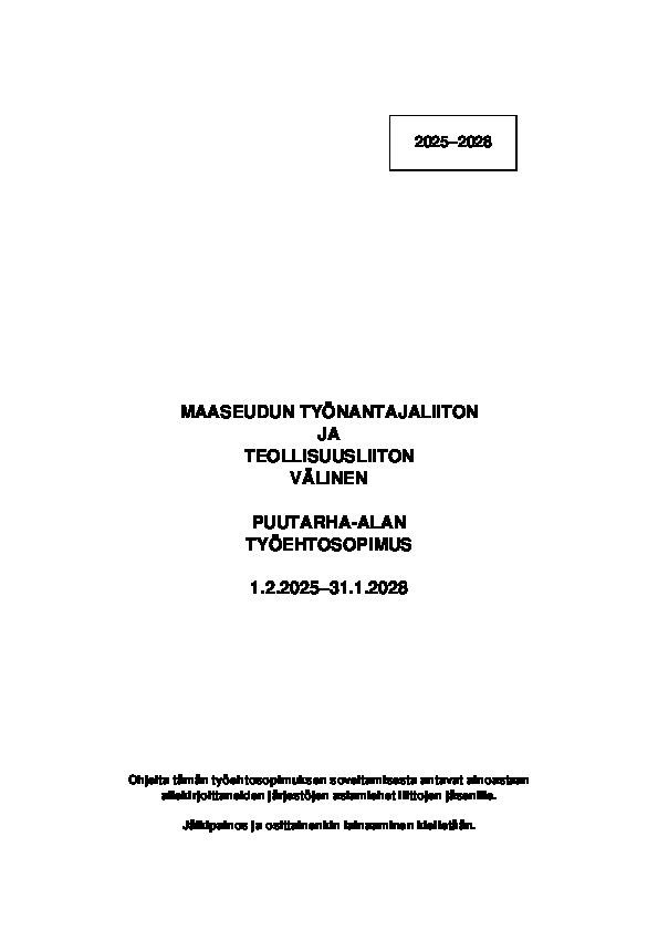 Puutarha-alan työehtosopimus 2025–2028