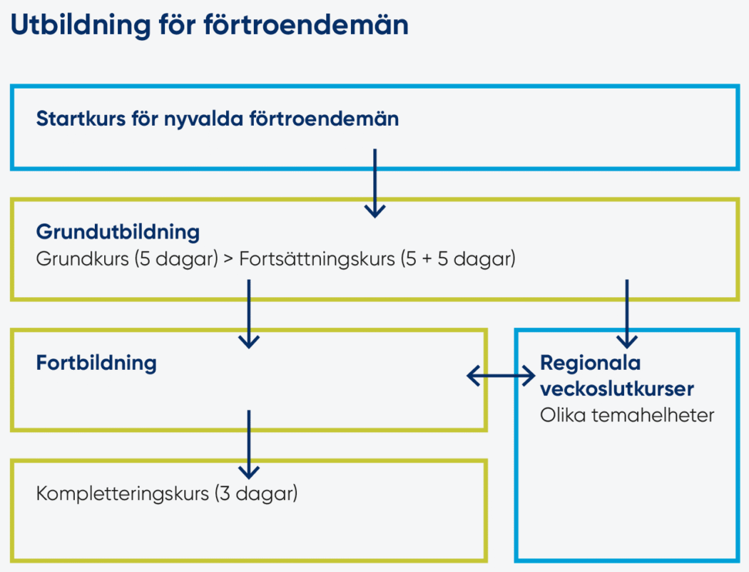 För att kunna sköta ditt uppdrag som förtroendeman behöver du skolning. Du ska diskutera din utbildning med arbetsgivaren, så snart du valts till förtroendeman. Diskussionen bör omfatta behovet, tidpunkten och målsättningen för utbildningen. Samtidigt är det bra att lyfta upp hur förhandlingsordningen på arbetsplatsen fungerar. Diskussionen ska hållas årligen mellan förtroendemannen och arbetsgivaren.